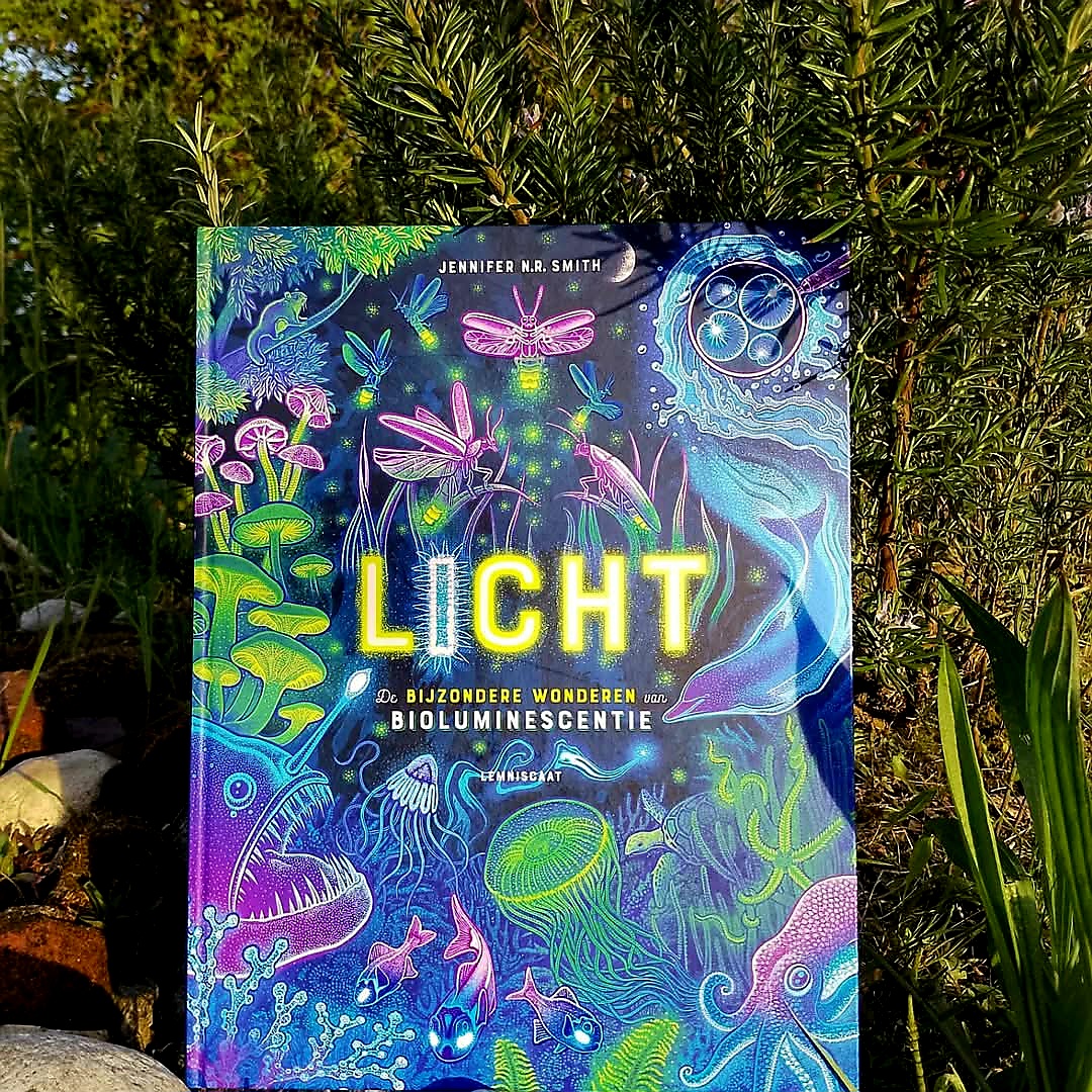 Met dit boek duik je in de bijzondere wereld van bioluminescentie. Je leert waarom bepaalde organismen licht geven in het donker en hoe ze dit voor elkaar krijgen. Zo is de slangster een kampioen in misleiden en ook de glimworm kan er wat van! En wist je dat een zeevuurvliegje een prachtige lichtshow weggeeft om een partner te vinden en daarbij een parel spoor van licht achterlaat in de oceaan? Dat en nog veel meer ontdek je in dit prachtige boek van uitgeverij Lemniscaat. Je kunt het hier bestellen.